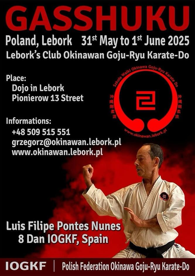 Gasshuku Polonia (Lebork)- 2025 Comparte en redes Curso en Lebork (Polonia), los días 31 de Mayo y 1 de Junio de 2025. Con Sensei Luis Nunes, Shihan C.N. 8º Dan, Instructor Jefe de I.O.G.K.F. España y IOGKF International Advisor (Komon)